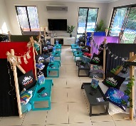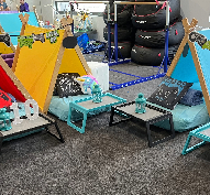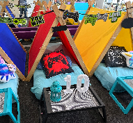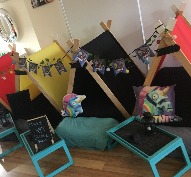 This fantastic Gaming theme is perfect for the gaming enthusiasts. It features bright coloured tents and gaming themed cushions.