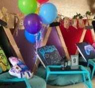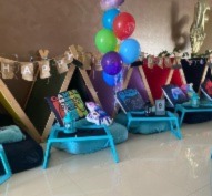 you pick up from us at Upper Coomera or Beenleigh on Friday then return back to us Sunday/Monday. Comes with everything you need ( exactly the same as set up party ) and includes full instructions and is super easy to set up. Includes the below: • Themed Tents • Air Mattresses and Electric pump • Fitted Sheets • Fluffy Blankets • Twinkle Lights • Flower/Ivy Garlands • Cushions • Breakfast Trays and Mats • Battery operated Tealight and Holders • Name Chalk Boards • Sleep Eye Masks - to keep • Digital Invitation