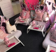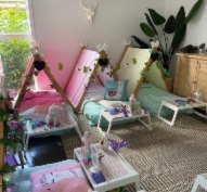you pick up from us at Upper Coomera or Beenleigh on Friday then return back to us Sunday/Monday. Comes with everything you need ( exactly the same as set up party ) and includes full instructions and is super easy to set up. Includes the below: • Themed Tents • Air Mattresses and Electric pump • Fitted Sheets • Fluffy Blankets • Twinkle Lights • Flower/Ivy Garlands • Cushions • Breakfast Trays and Mats • Battery operated Tealight and Holders • Name Chalk Boards • Sleep Eye Masks - to keep • Digital Invitation